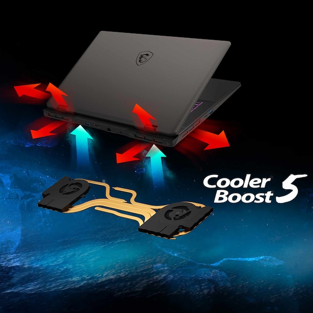 Den nya kylventilen med 6 utblås tillåter flervägs utlopp av luftflöden för effektivare kylning, tillsammans med delad rördesign med 5 värmerör mellan CPU och GPU, en större termiska rörs inre diameter och MSI exklusivt termiskt fett för att säkerställa maximal prestanda under extremt spelande.