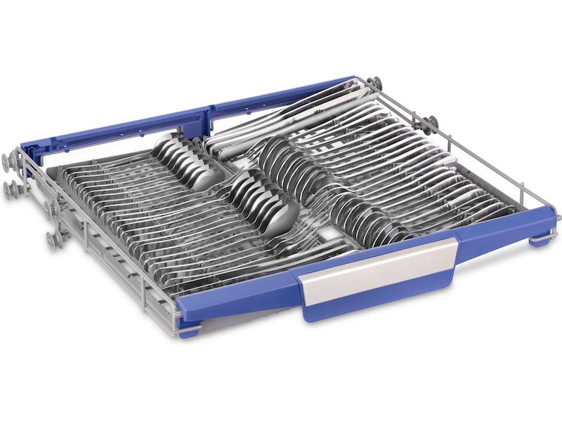 Diskmaskinen är utrustad med tre korgar, inklusive en praktisk besticklåda som gör det enkelt att organisera bestick och små köksredskap. Detta frigör mer utrymme i de nedre korgarna för tallrikar, kastruller och glas. Den höjdjusterbara övre korgen ger dig flexibilitet att anpassa utrymmet för att rymma större föremål, oavsett om det gäller höga glas eller stora grytor.