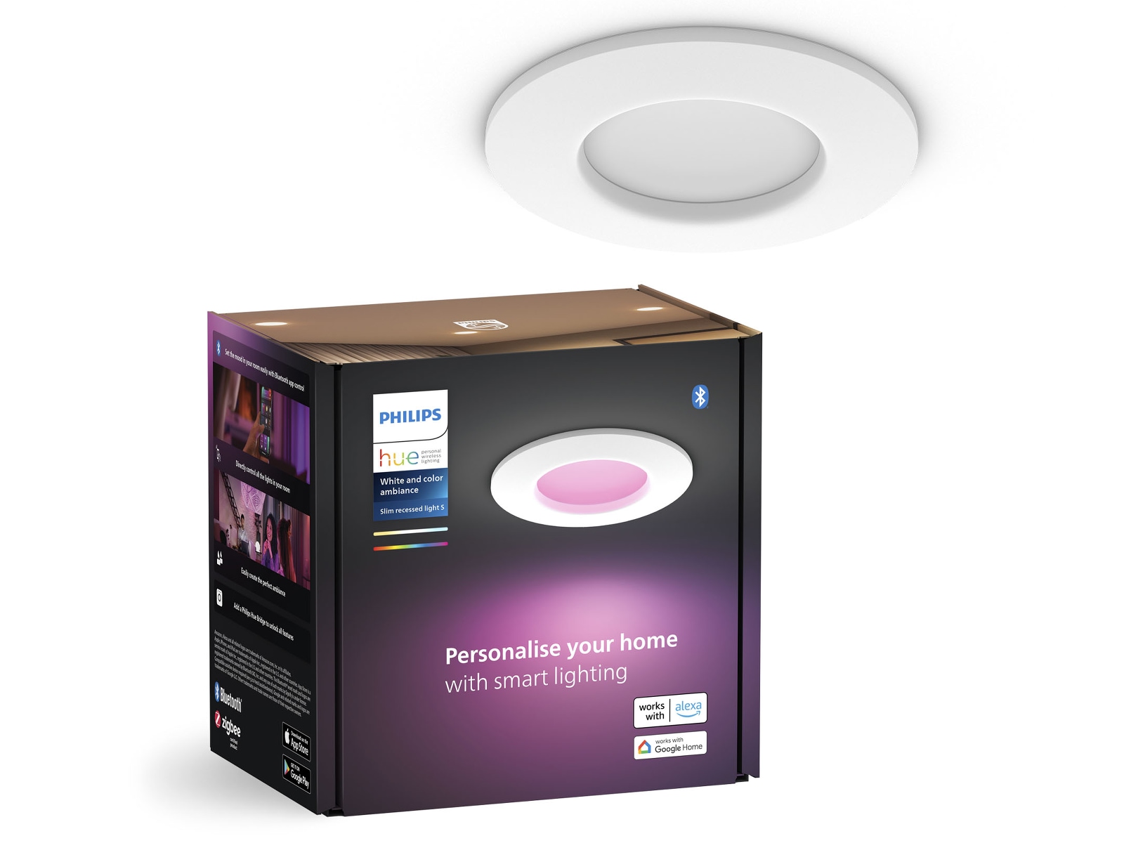 Kontrolleras via Bluetooth, 4 belysningslägen, Röstkontroll, App-kontrollerad, Slimmad design |