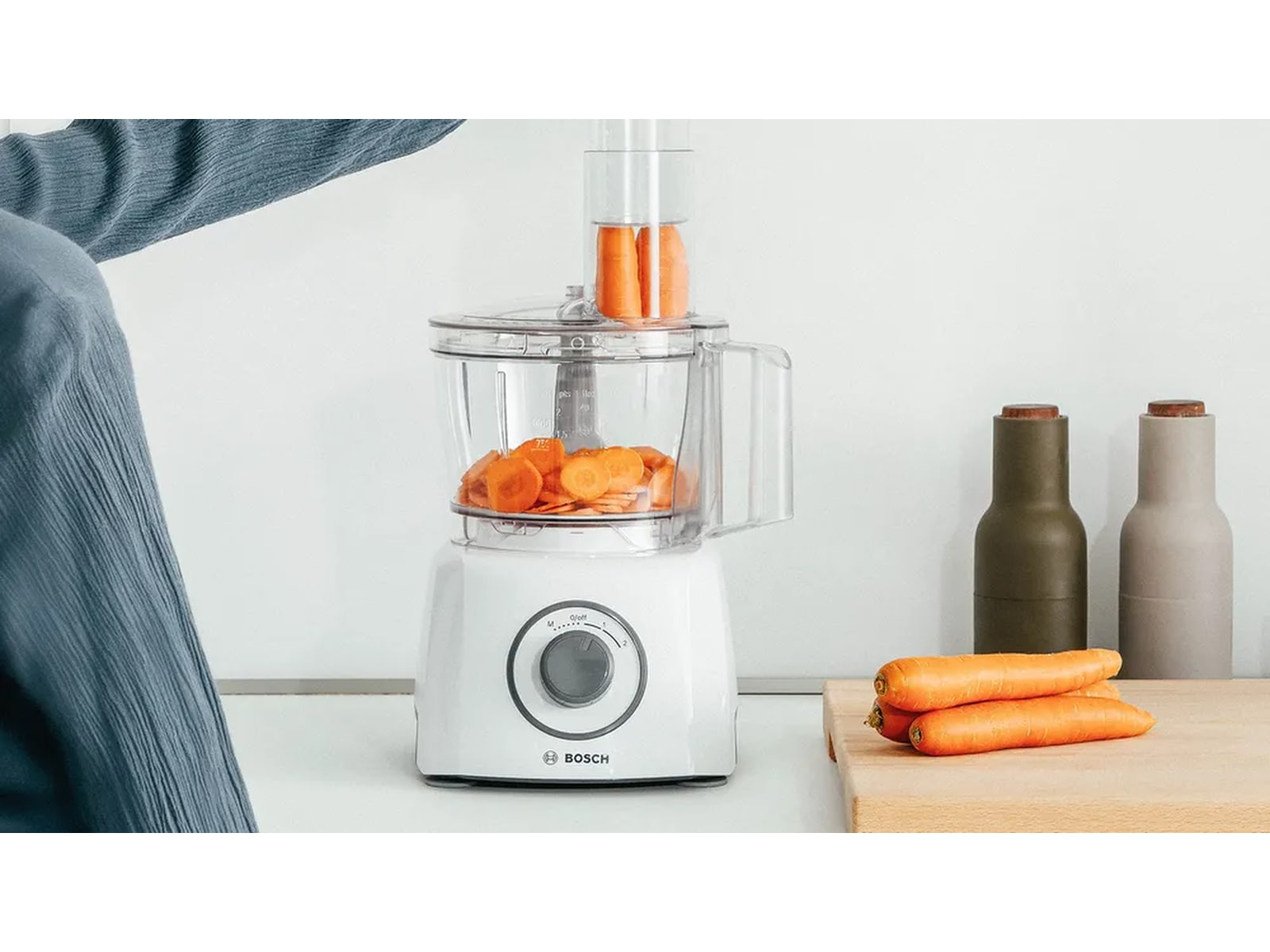 Lagar du ofta rätter med grönsaker? Oavsett om du river grönsaker som morötter eller gurka, hackar lök eller frukt - tack vare ett brett utbud av tillbehör som en universalkniv i rostfritt stål och en vändbar skiva för skärning och rivning har du allt du behöver.