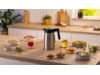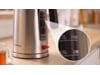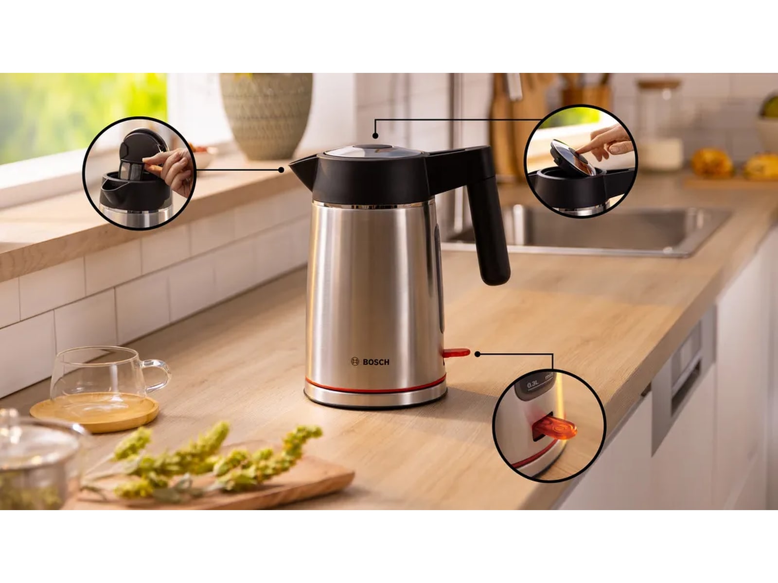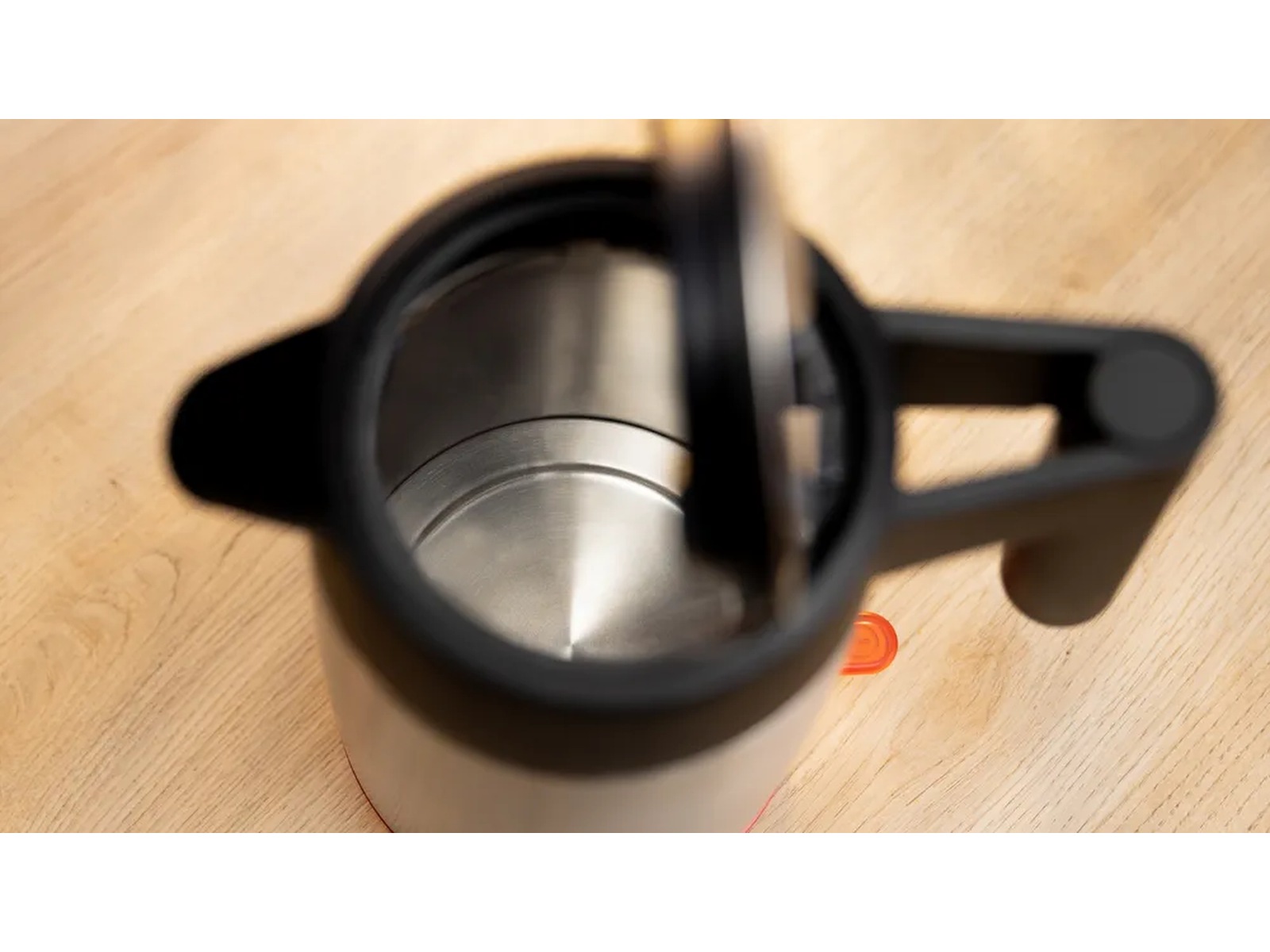 Öppna locket med en enkel knapptryckning. Vattenkokaren kan rengöras mycket enkelt och snabbt tack vare den stora öppningen.