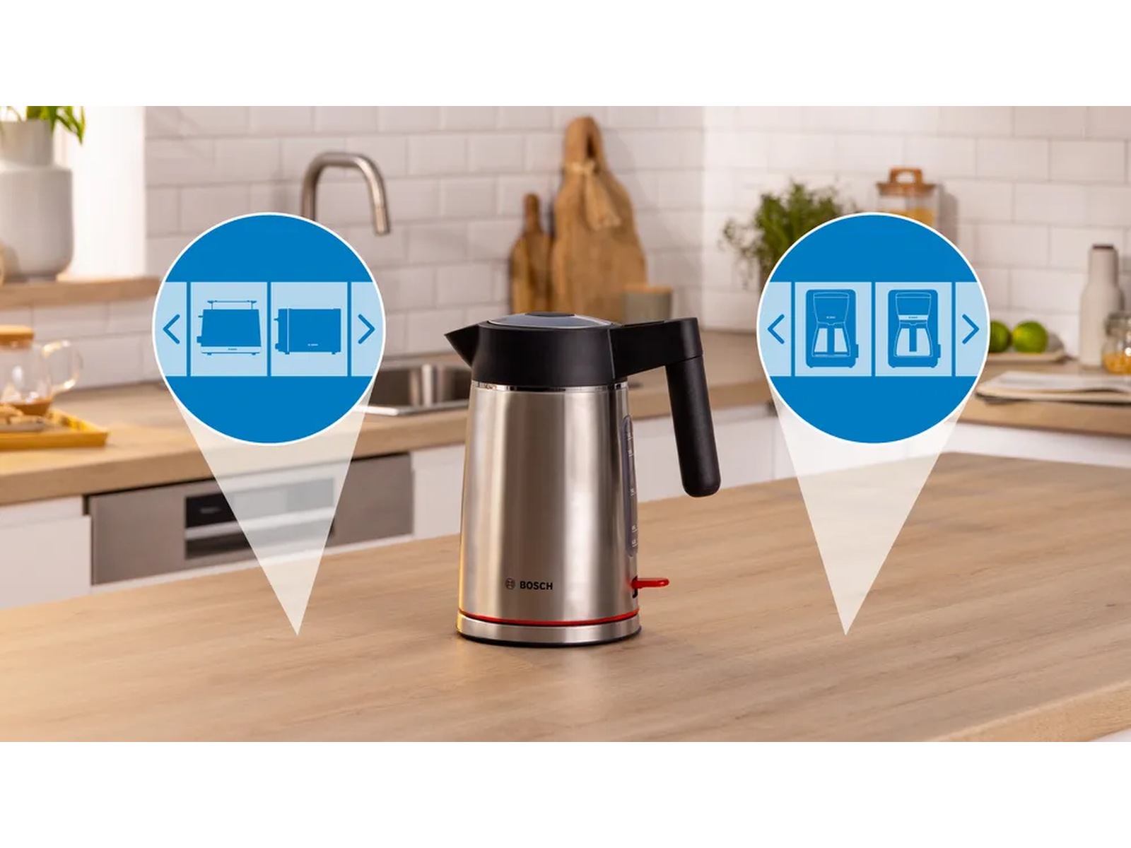 Denna vattenkokare är utrustad med tre säkerhetsfunktioner så att du inte behöver undra om du har stängt av den eller inte. Vattenkokaren stängs av automatiskt så fort vattnet börjar koka eller när den inställda temperaturen nås. Den stängs också av automatiskt om den slås på utan vatten eller så fort den lyfts från bottenplattan.