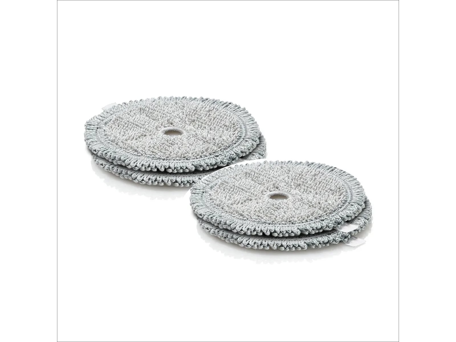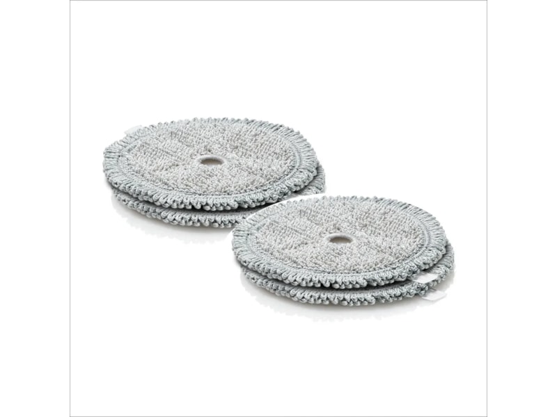 Underhållet av mikrofibermoppdynorna är mycket praktiskt och hygieniskt. Kuddarna kommer med små spikar, som är lätta att greppa och gör att de kan tas bort från den roterande plattan mycket lätt. Tack vare taggarna kan kuddarna läggas i tvättmaskinen utan att komma i kontakt med smuts. De återanvändbara kuddarna kan tvättas i 40 °C, gärna i tvättmaskin. Av hygieniska skäl rekommenderar vi maskintvätt efter varje användning. Efter ca. Efter 6 månader föreslår vi att du byter ut kuddarna.