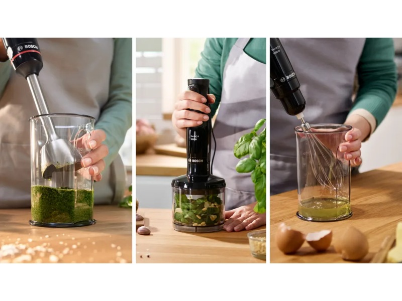 Hemlagad mat smakar bäst. Med minihackan fördelas färska kryddor, lök, nötter, kött och vitlök snabbt och enkelt. Ballongvispen vispar lätt ihop äggvitor, grädde och lättare blandningar till läckra desserter.