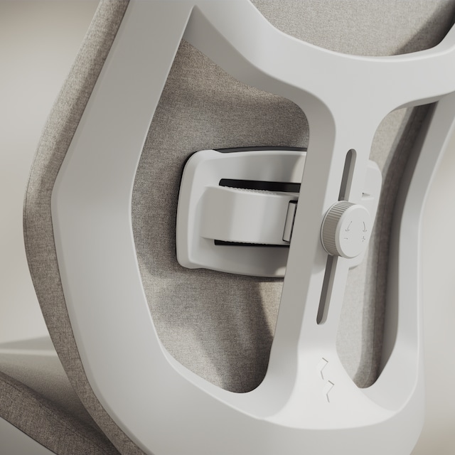 Justera djupet och höjden på det inbyggda svankstödet för att optimera ergonomisk komfort för din rygg.