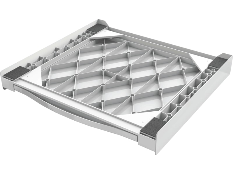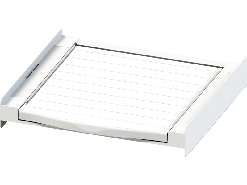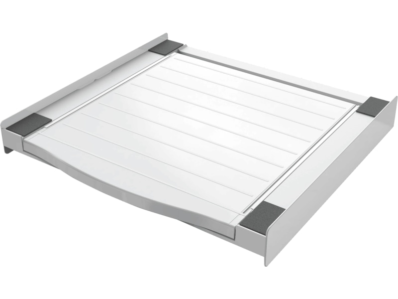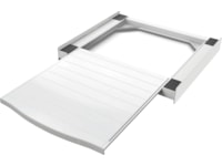Spara plats och placera torktumlaren ovanpå tvättmaskinen med den universella och verktygsfria staplingsramen med utdragbar hylla. Passar för frontmatade tvättmaskiner och torktumlare.