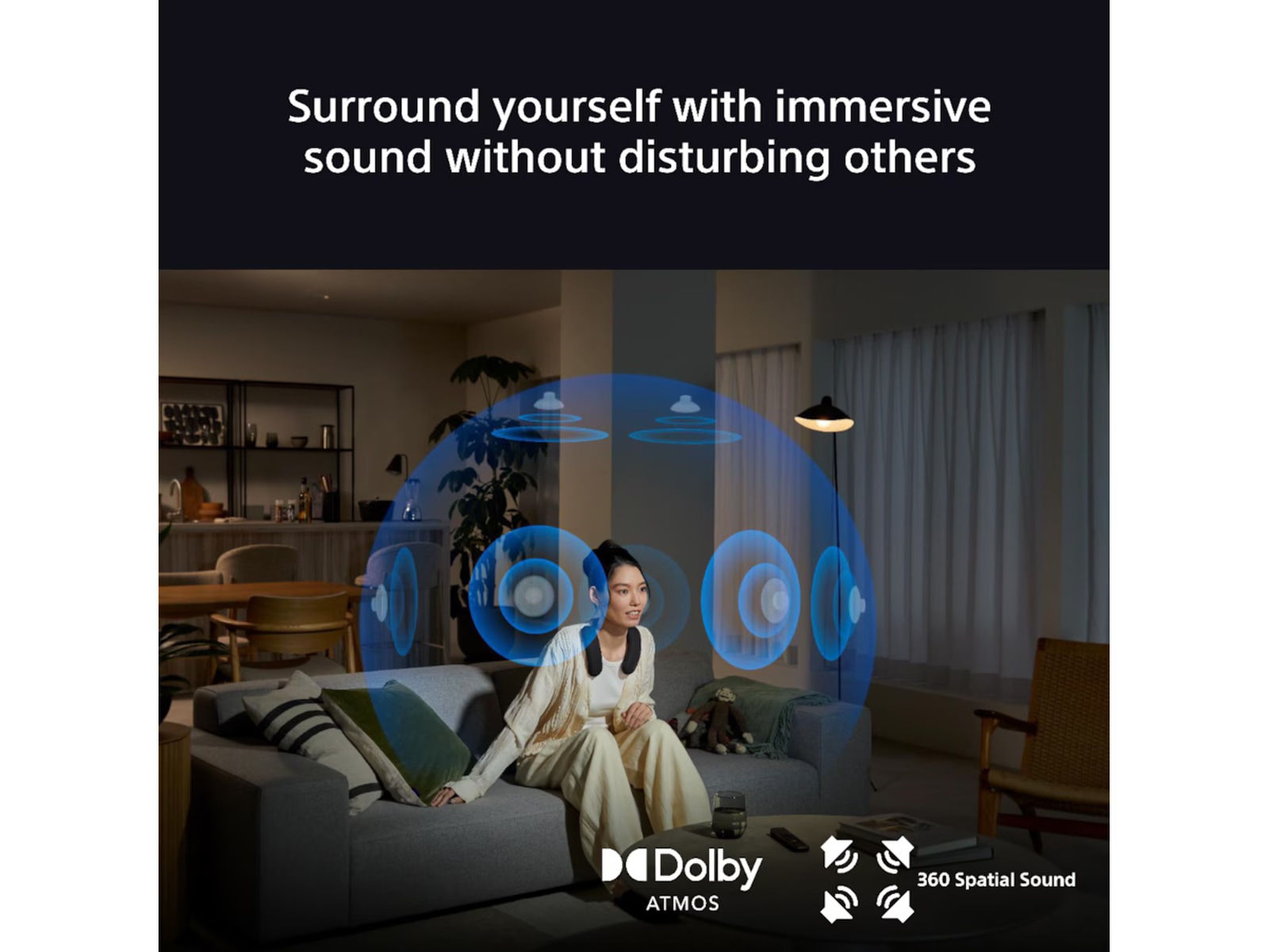 Trots sin kraft kommer BRAVIA Theatre U inte att störa din omgivning, eftersom ljudet är koncentrerat mot dina öron.