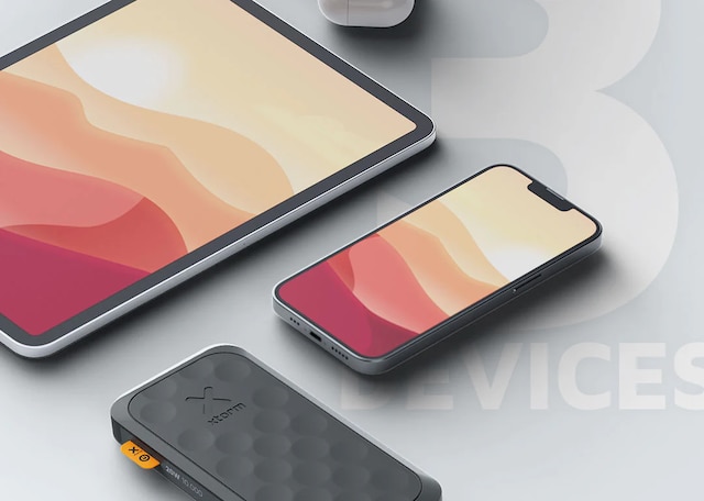 Behöver du ladda flera enheter samtidigt? Inga problem! Power Bank har tre portar, inklusive den kraftfulla 20W USB-C PD-porten, samt en extra 18W USB-C och 18W USB-A-port. Nu kan du ladda din telefon, surfplatta och din väns enhet – allt på en gång.