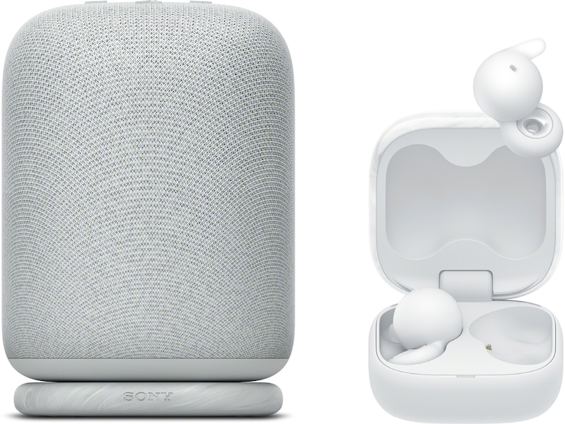 LinkBuds Speaker har en elegant dockningsstation för snabbladdning och en avtagbar rem för att enkelt kunna bära eller hänga den. Den levererar ett klart och detaljerat ljud, perfekt för musik, ljudböcker eller podcasts.