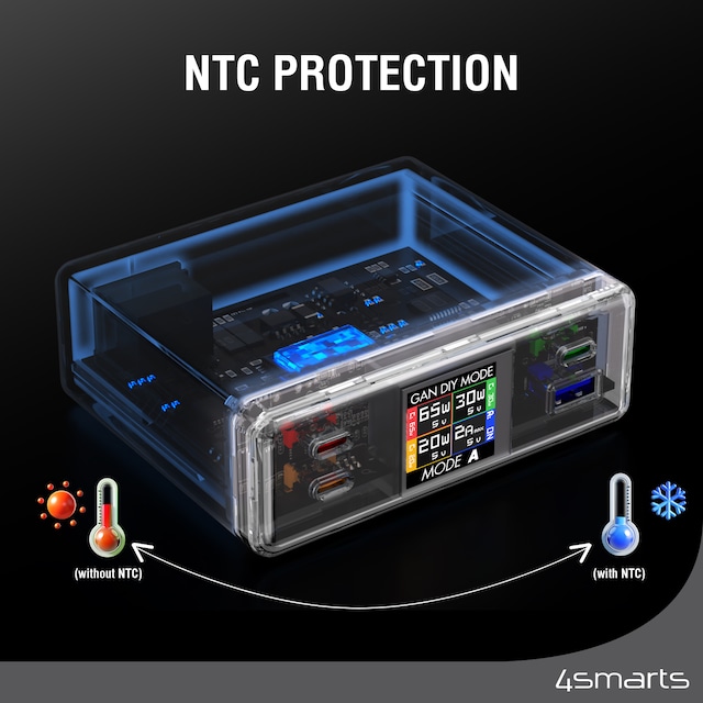 Med den integrerade NTC-temperaturkontrollen kan du ladda dina enheter säkert och effektivt. Denna intelligenta teknik skyddar mot överhettning och garanterar optimal laddningsprestanda. Dra nytta av maximal prestanda och förläng livslängden på dina enheter – det är Smart Charging, utvecklad speciellt för dig.