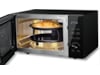 Ugnen har även fyra förprogrammerade inställningar som gör det enkelt att laga mat med både varmluft och mikrovågor automatiskt.