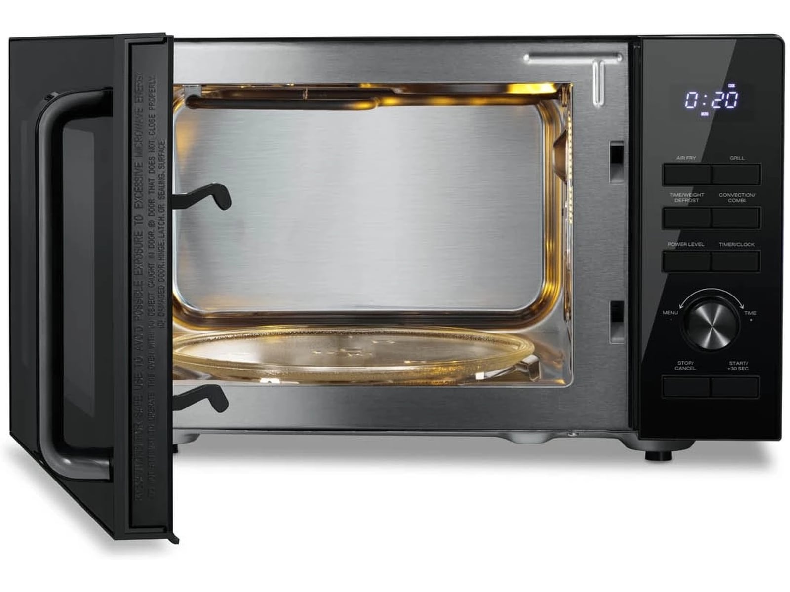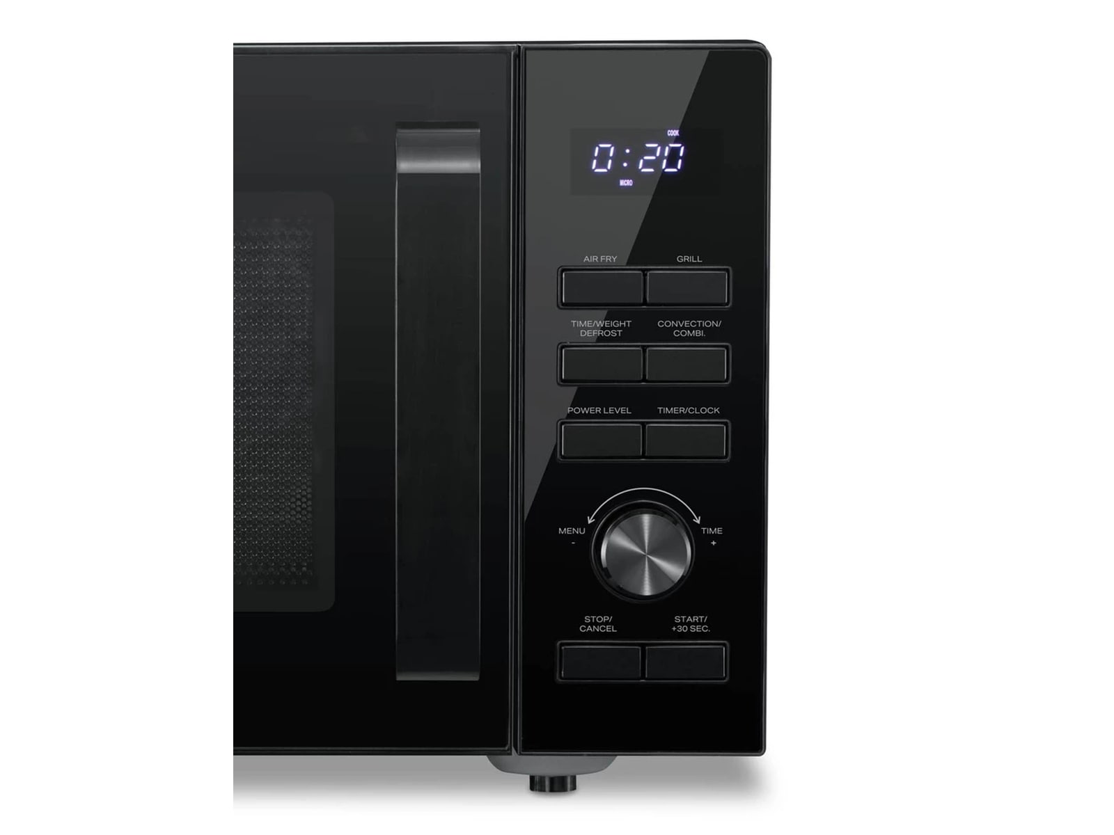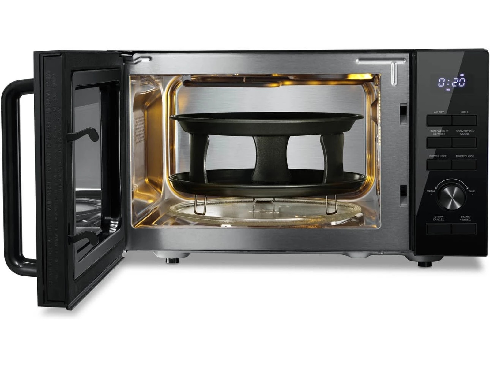 Mikrovågstillagningsprogram 6 automatiska tillagningsfunktioner, Konvektion och mikrovågor, Varmluft, Snabbstart, Tryckupptining, Luftfritera, 7 automatiska luftfritös-funktioner, Tidsavfrostning, Grill