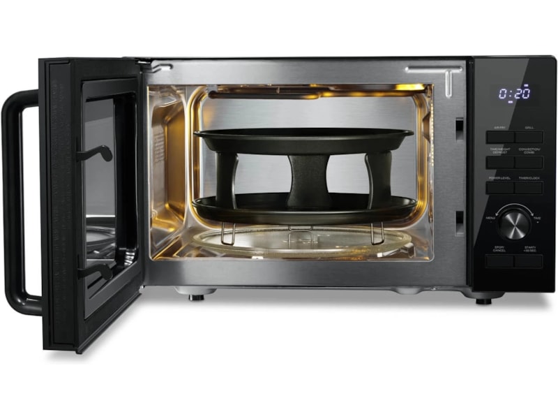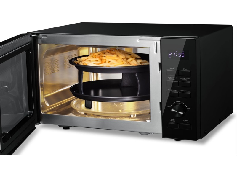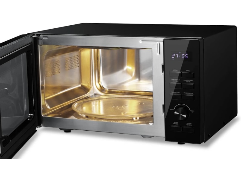 Konvektionsfunktionen säkerställer en krispig yta och en saftig insida i din mat, vilket ger en restaurangliknande upplevelse hemma. Mikrovågsugnen är utrustad med flera förinställda program som gör det enkelt att uppnå optimala resultat, oavsett om du vill tina upp fryst mat eller luftsteka pommes frites.