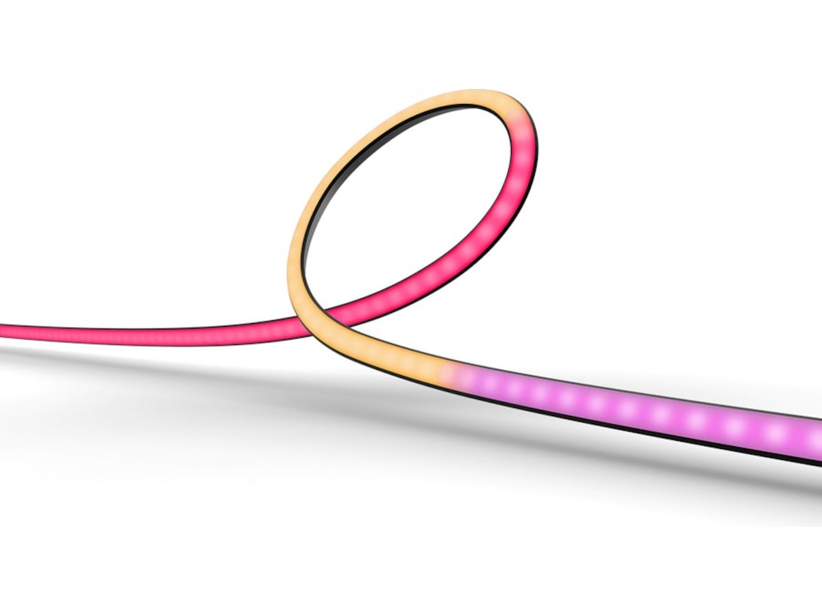 Du kan också förlänga den upp till 10 meter med förlängningar på 1 meter. Precis som övriga produkter i kategorin White and color ambiance har ljusremsan tillgång till 16 miljoner färgnyanser, som du kan anpassa efter dina egna preferenser både för att skapa stämning och för underhållningsupplevelser. Ljusremsan är hållbar och har mycket bra lim, så den fäster på svåra ytor och har inga problem med hörn.