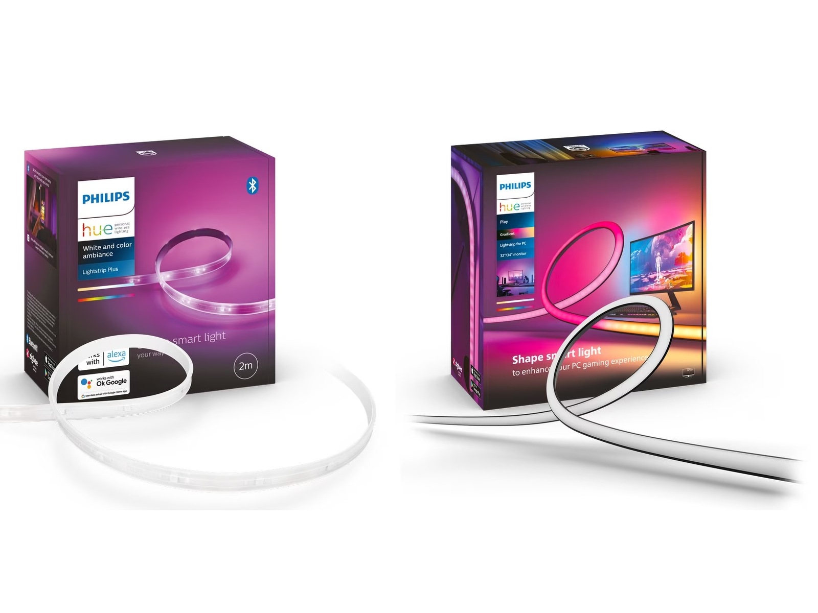 Philips Hue Lightstrip Plus sockel V4, 2 meter startpaket + Philips Hue Play gradient PC lightstrip 32"-34"