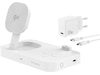 Upptäck den ultimata laddstationen för dina enheter! Vår trådlösa laddare är den perfekta partnern för att ladda din smartphone och dina TWS-hörlurar samtidigt. Till exempel, din smartphone laddas trådlöst med en blixtsnabb 15W, medan dina TWS-hörlurar får 5W. Du kan ladda din smartwatch vid en av de två USB-C-portarna med den ursprungliga laddningskabeln som följer med din smartwatch eller använda en separat tillgänglig laddningskabel.