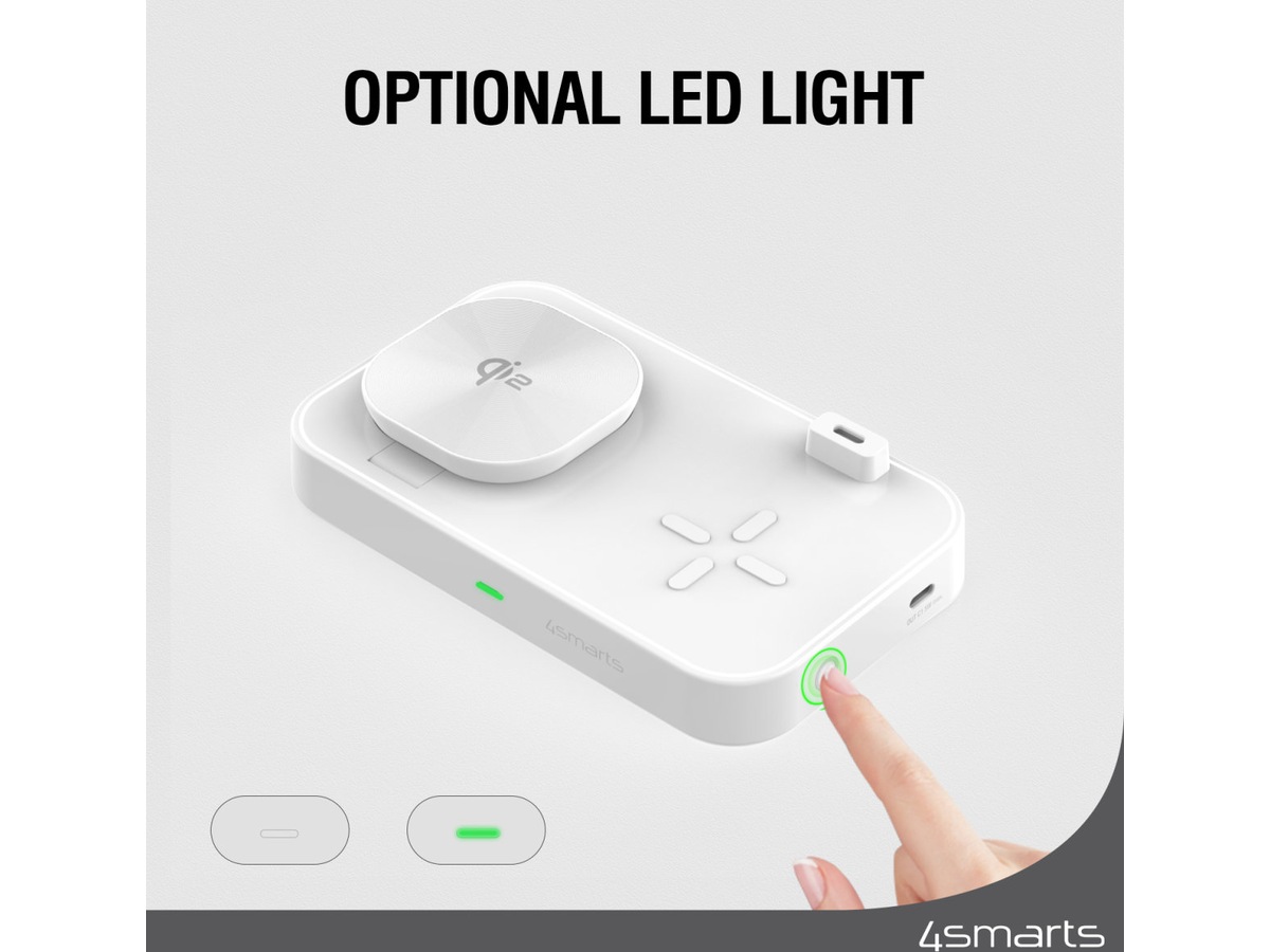 Egenskaper Snabb trådlös laddning, Laddar samtidigt upp till 4 enheter, Laddning i horisontellt och vertikalt läge, Vikbar, Magnetisk kontakt, LED-indikator