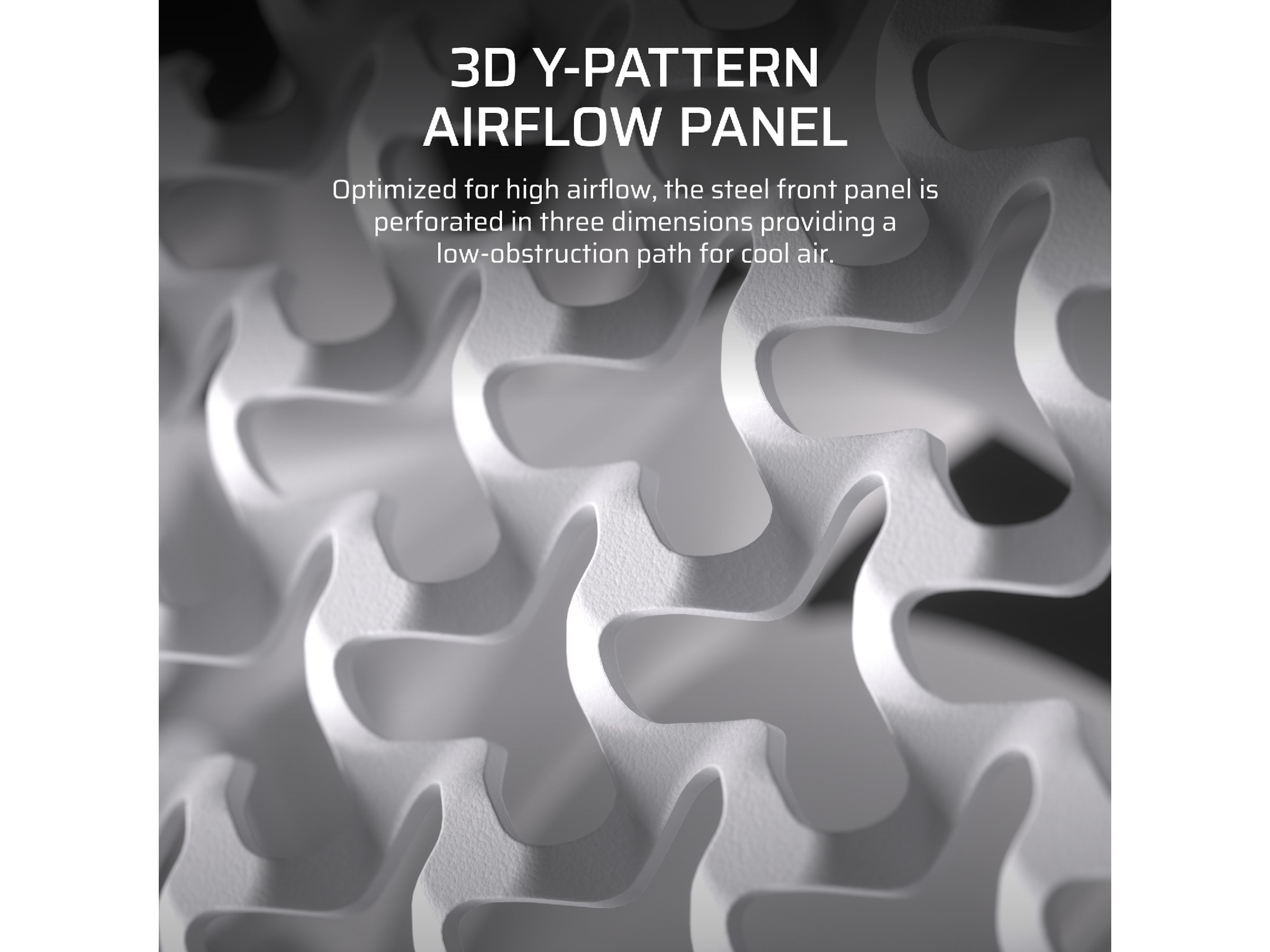 Optimerad för högt luftflöde och minimal begränsning, stålfrontpanelen är perforerad i tre dimensioner med ett Y-mönster som ger en låg hinderbana för kall luft.