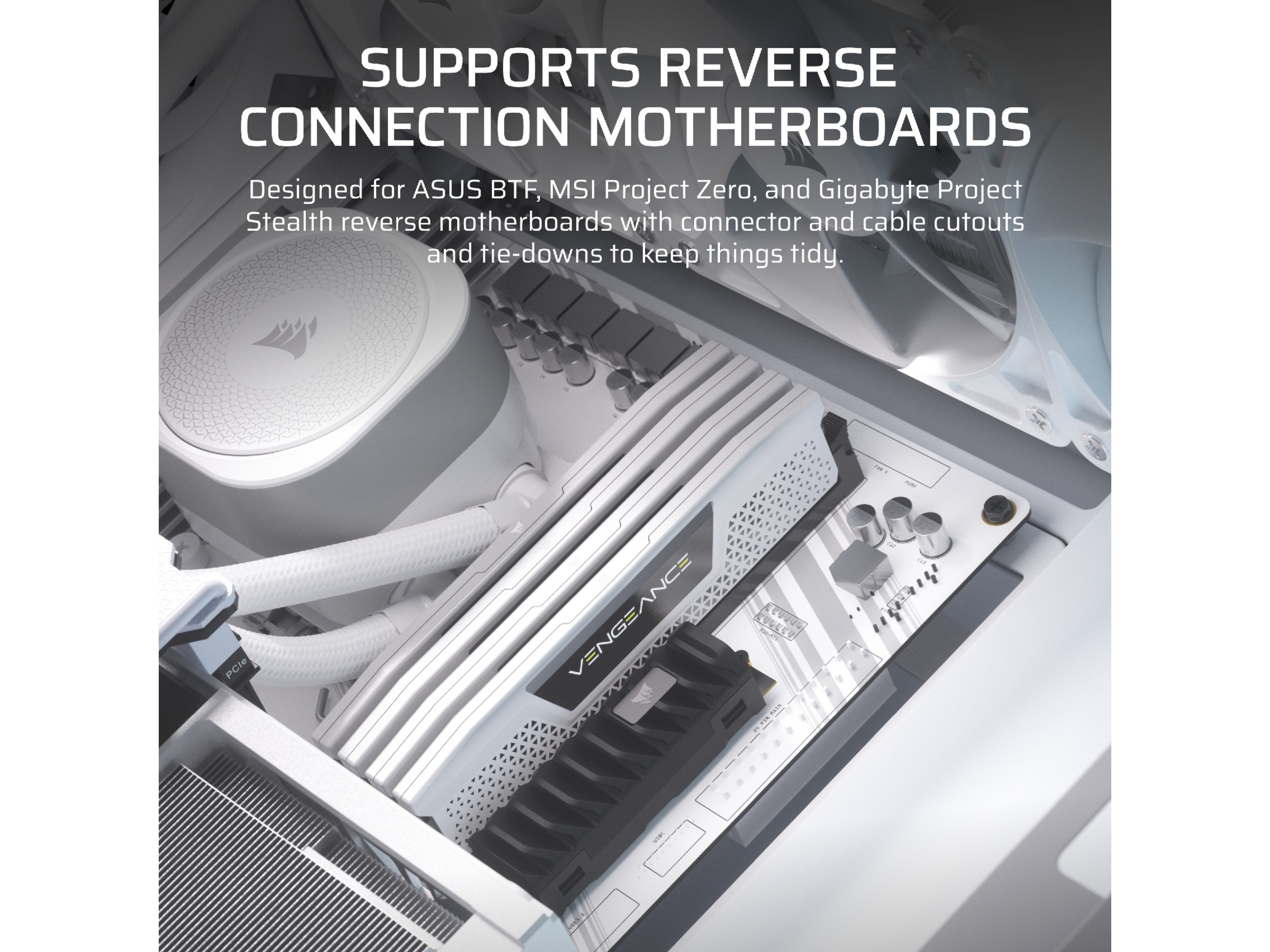 Befria dig från begränsningarna för traditionell PC-byggnad med CORSAIR FRAME 4000D RS ARGB, med det innovativa FRAME Modular Case System för att perfekt anpassa din konstruktion. Inkluderar 3x CORSAIR RS ARGB PWM-fläktar med seriekopplade 4-stiftskontakter, åtta lysdioder per fläkt och +5V ARGB moderkortskontroll. InfiniRail™ monteringssystem förenklar fläktinstallationen, stöder dubbla 360 mm radiatorer och en 3D Y-mönster Airflow frontpanel för optimal kylning. Den ökade bredden och längden säkerställer kompatibilitet med kraftfulla grafikkort och kylningsalternativ, med stöd för moderkort med omvänd anslutning. Vi tillhandahåller ramen. Du skapar konsten.