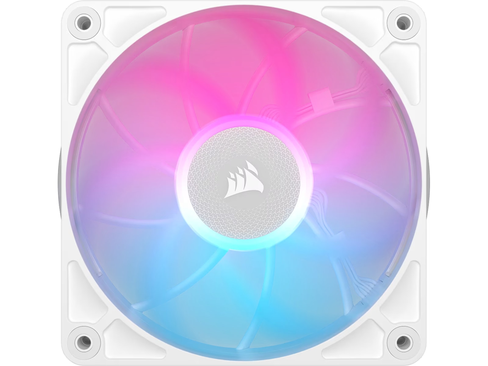 CORSAIR RX120 MAX RGB-fläktar är 30 mm tjocka för mycket högt statiskt tryck och bra luftflöde, samtidigt som de lyser upp din dator med åtta RGB-lysdioder och anslutna med sömlös iCUE LINK-teknik.