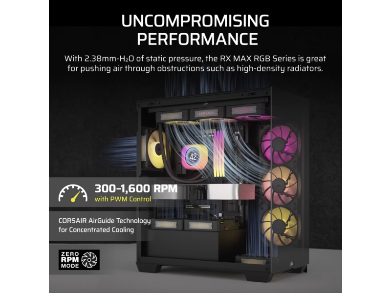 RX MAX RGB-fläktar utnyttjar CORSAIRs expertteknik och design för att maximera alla fördelar med dess tjockare hölje.