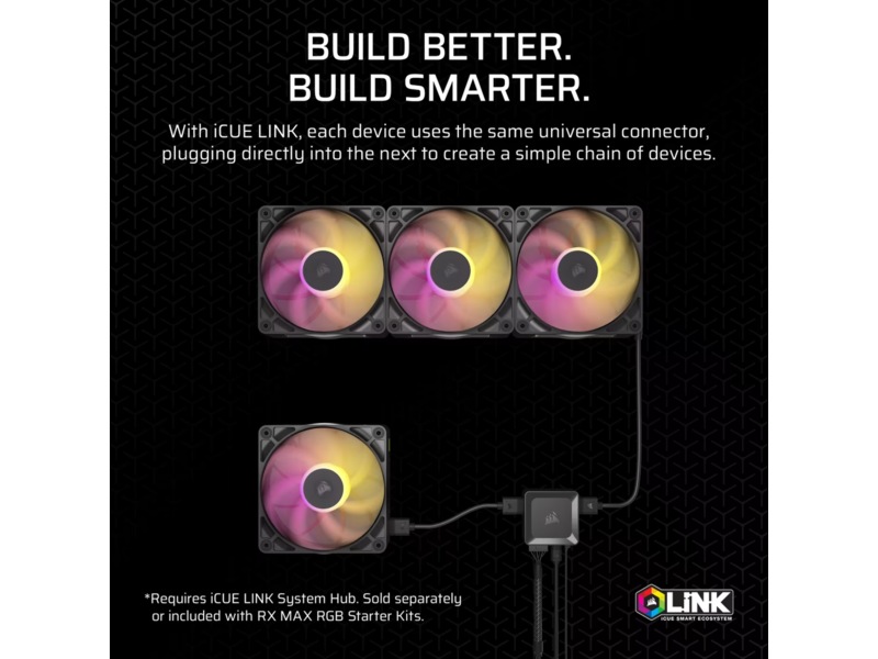 • Kräver iCUE LINK System Hub (ingår med RX MAX RGB Starter Kit)