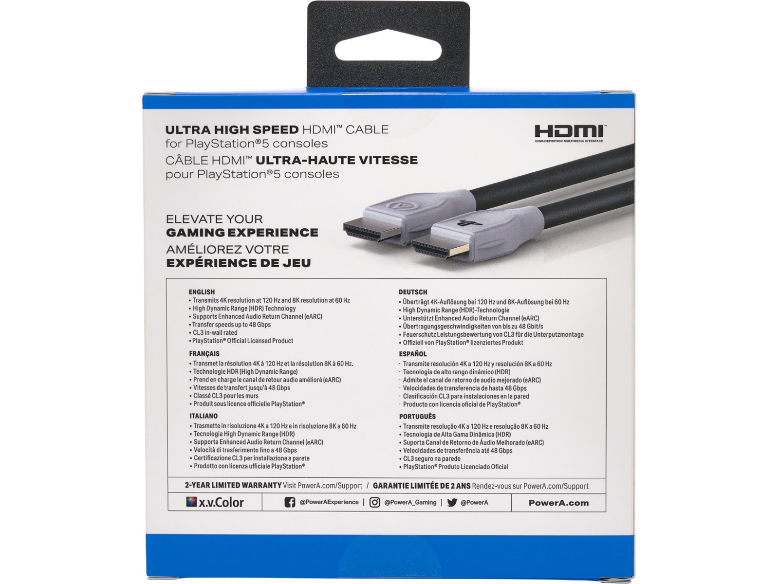 Officiellt licensierad av PlayStation® och CL3 in-wall-klassad, ger denna Ultra High Speed HDMI™-kabel en längd på 10 fot (3m). Så fortsätt och inse den perfekta installationen utan att ett kort tjur håller dig tillbaka.