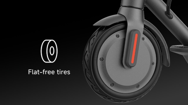 Navee EasyRide 20 är utrustad med nyutvecklade 8,5” punkteringsfria hollow-out-däck som ger en stabil och bekväm körupplevelse utan behov av underhåll eller luftpåfyllning. Eftersom de saknar inre slang elimineras risken för punktering, vilket ökar hållbarheten och säkerheten. Den ihåliga designen förbättrar stötdämpningen och ger en mjukare åktur, vilket gör scootern smidig att köra både på stadsgator och ojämna underlag.