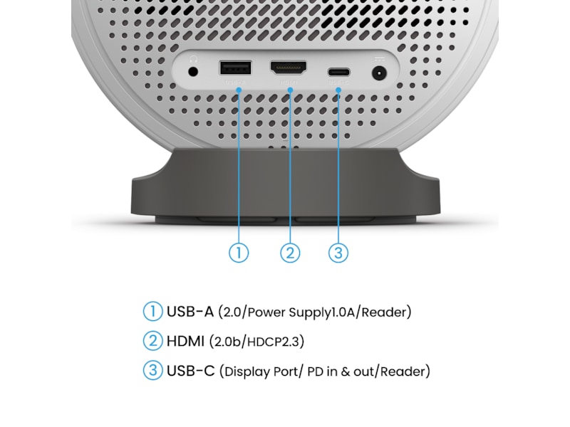 1 x USB 2.0 - 4-stifts USB typ A, 1 x USB-C/DisplayPort-ingång - 24 pin USB-C, 1 x linjeutgång för ljud - minitelefon 3,5 mm, 1 x HDMI-ingång - 19-stifts HDMI typ A