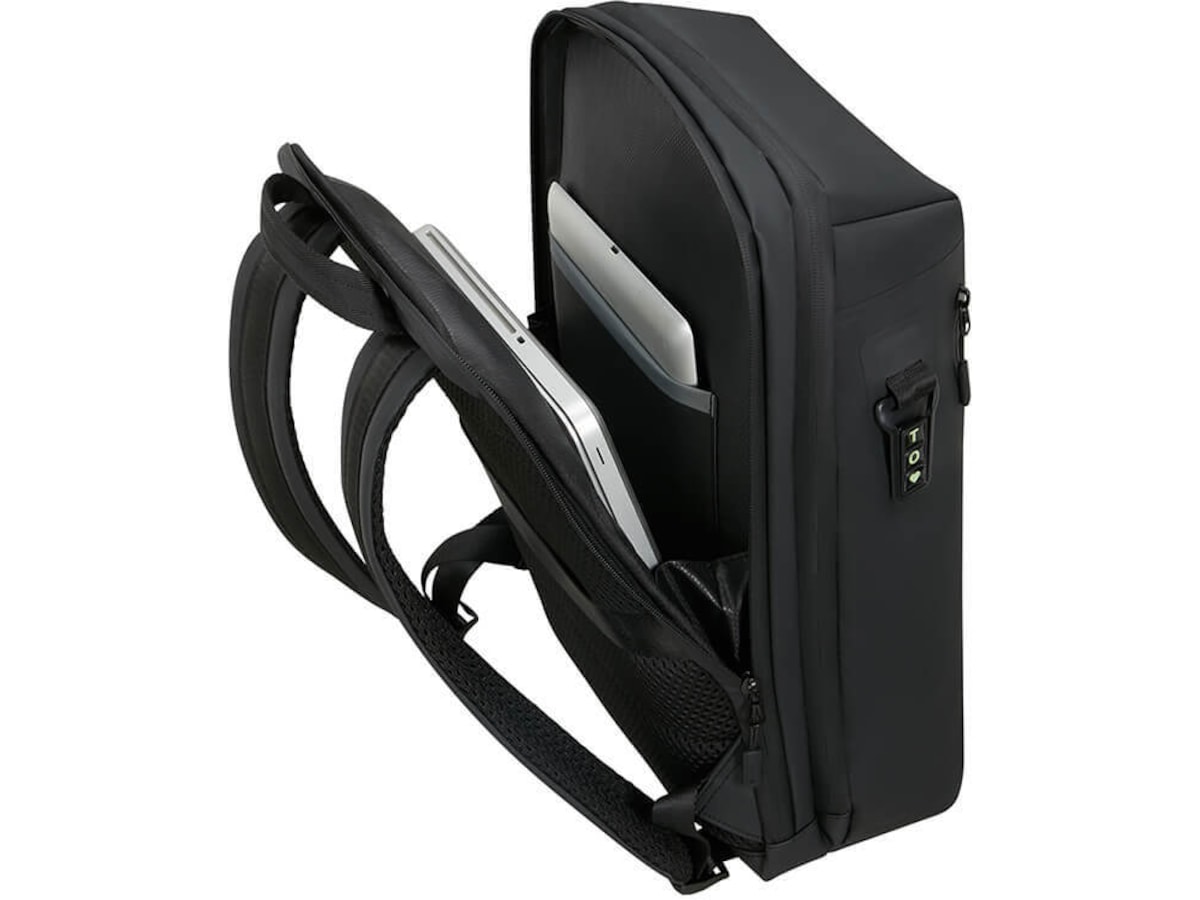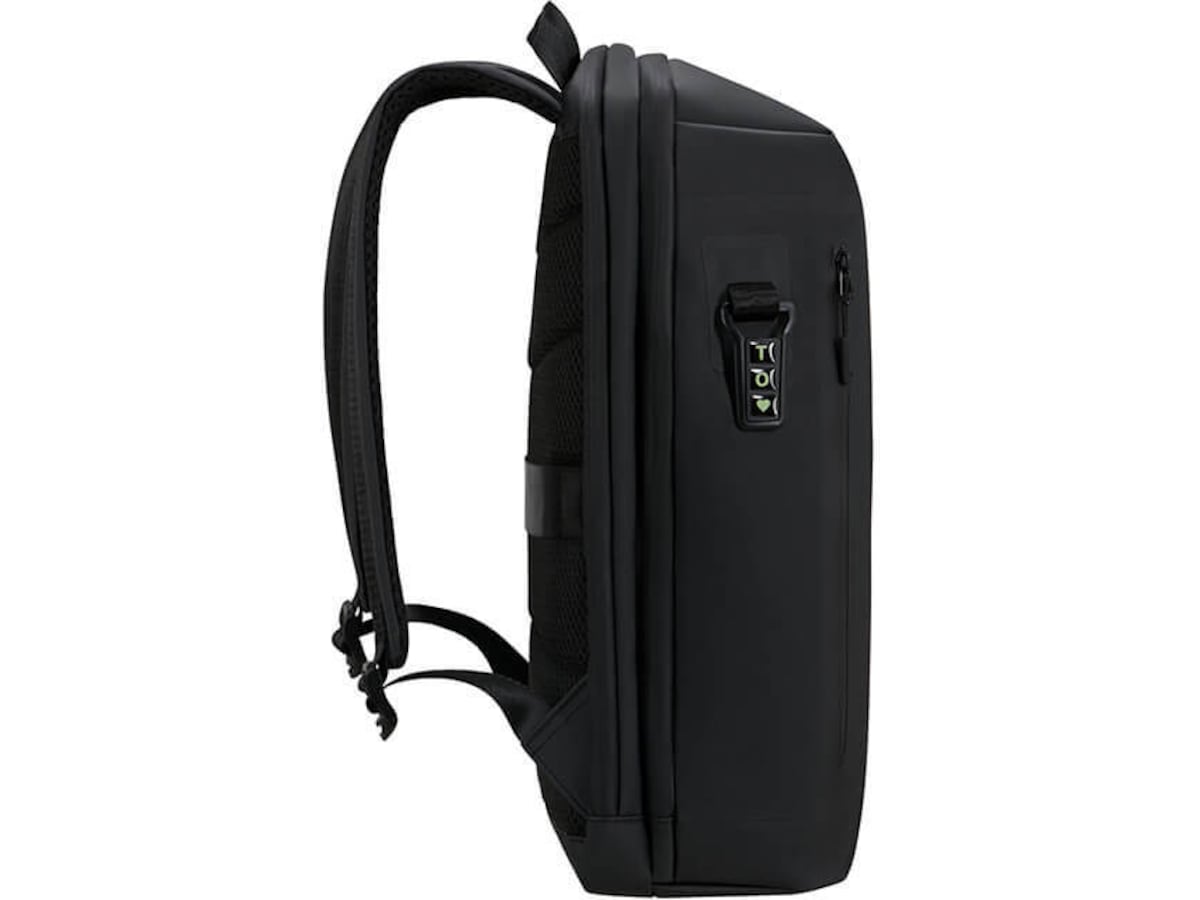 Samsonite ryggsäck Coatify Biz har en minimalistisk design, nya former och trendiga färger, och är utrustad med affärsorganisation och en 15,6" laptopficka. Interiör och exteriör är delvis gjorda av återvunnet material.