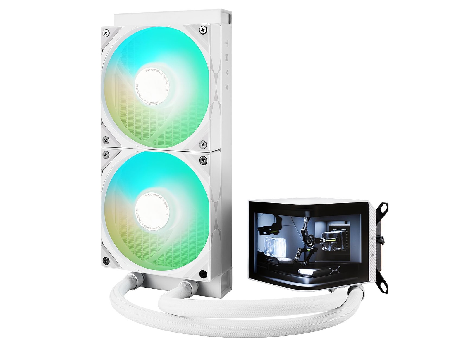L-formad 6,5" LED-skärm, LCP-fläktblad (flytande kristallpolymer), Inbyggda antivibrationsdynor, Anamorf 3D-skärm, ARGB fans, 8:e generationens Asetek-pump, Delad skärm, Fodrade rör (400 mm), 2k@60Hz uppdateringsfrekvensskärm