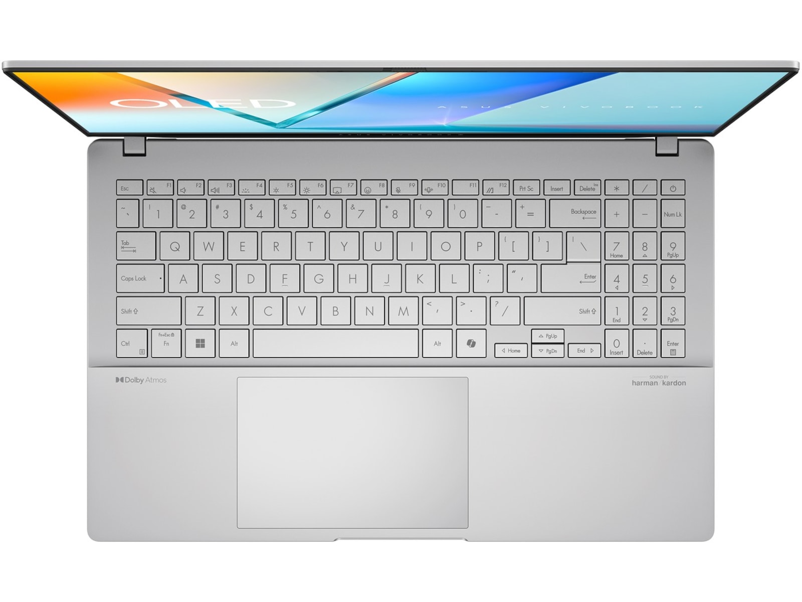 Den 15,6-tums 3K 120 Hz OLED-skärmen, med en upplösning på 2880 x 1620, levererar förfinade spegelreflexer och extraordinära skuggdetaljer, allt i levande, verklighetstrogna färger. Fördjupa dig i en otroligt smidig och levande underhållnings- och kreativ upplevelse. - Smal. Stark. Sofistikerad