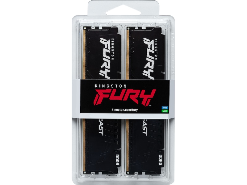 Minneskortet Kingston FURY™ Beast DDR5 levererar den senaste, banbrytande tekniken för nästa generation av gamingplattformar. DDR5 har försetts med en hel arsenal av förbättrade funktioner och lyfter hastighet, kapacitet och pålitlighet till nya höjder genom exempelvis felkorrigeringskod ECC (ODECC) för ökad stabilitet vid extrema hastigheter, dubbla 32-bitars subkanaler för ökad effektivitet samt modulintegrerad krets (PMIC) för strömförsörjning i syfte att ge kraft där den behövs som mest.