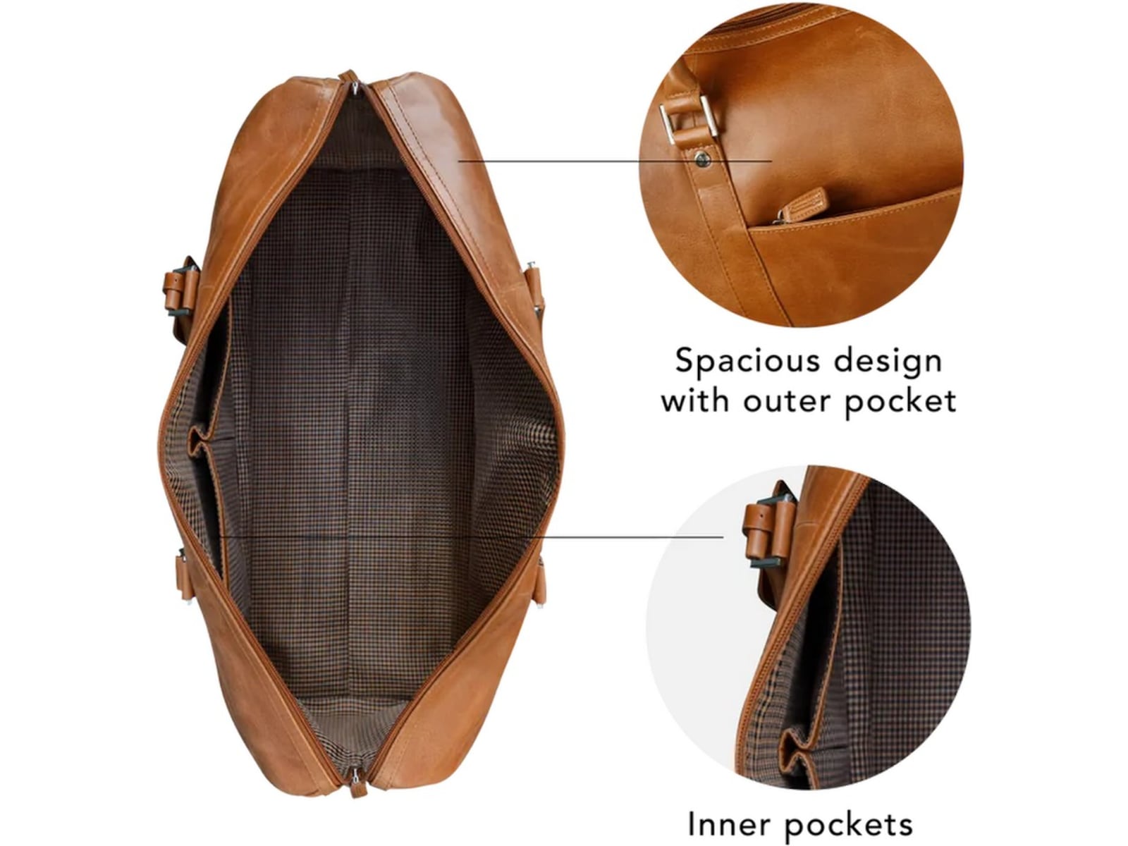 - Two leather handles plus a removable and adjustable shoulder strap
