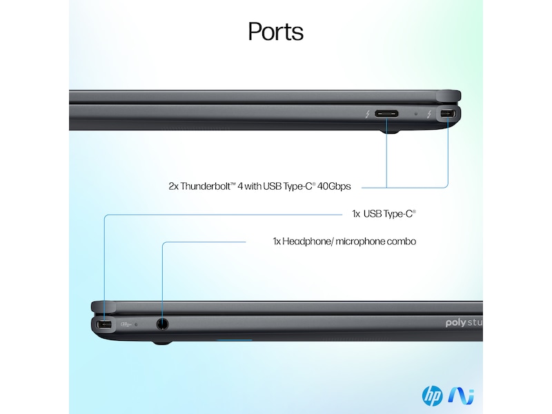 2 x USB4 (supports Thunderbolt 4, DisplayPort 2.1 Alt Mode) (Power Delivery, Sleep & Charge), USB-C 3.2 Gen 2 (supports DisplayPort 1.4a Alt Mode) (Power Delivery, Sleep & Charge), Telefon/mikrofonkombinationsjack