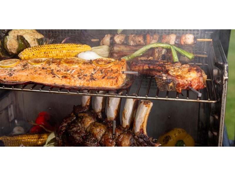 - 4 sonder: 5 interna temperatursensorer i varje sond kan övervaka inre kötttemperatur upp till 100°C och omgivnings-/externtemperatur upp till 535°C samtidigt.