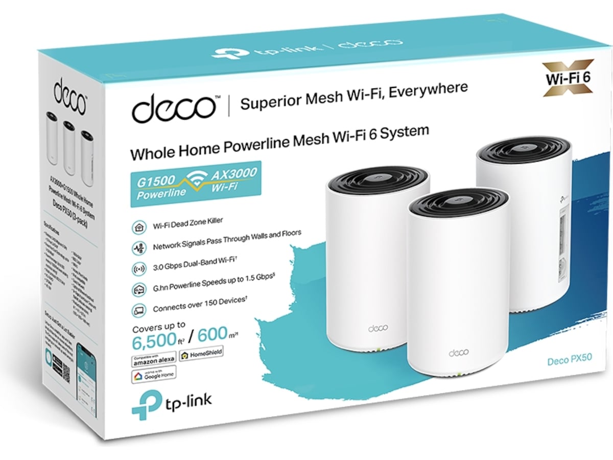 Dubbelband, IPTV-support, Routerläge, Powerline-teknik, DHCP-server, Adressreservering, Access Point arbetsläge, MU-MIMO-teknik, Quality of Service (QoS), återställningsknapp, IGMP-proxy, Märkt VLAN, IGMP snooping, DHCP-klient, Firmware Over-the-Air (FOTA), Stateful Packet Inspection Firewall (SPIF), AI-driven mesh, TP-Link HomeShield, BSS-färgning, Guest Network, NAT-stöd, Röststyrning, Network access control, Portbefordran