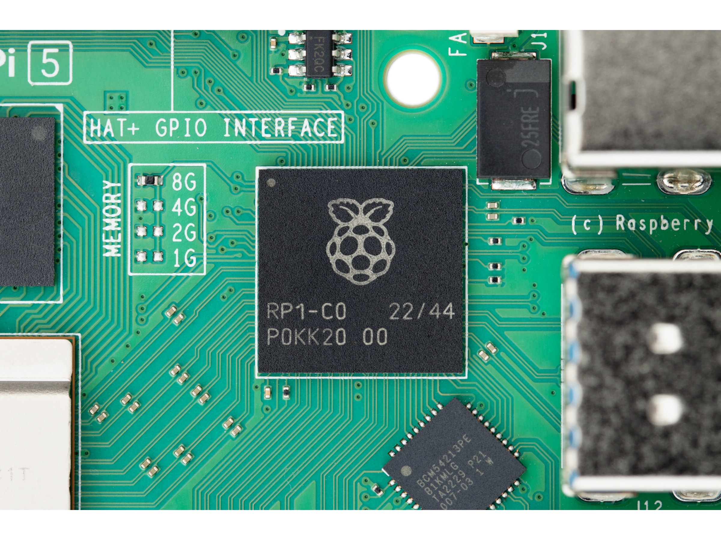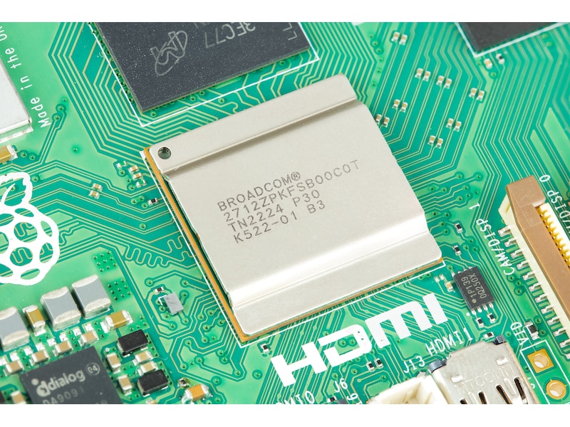 Raspberry Pi 5 är byggd med hjälp av RP1 I/O-kontrollern, ett paket som innehåller kisel designat internt hos Raspberry Pi.