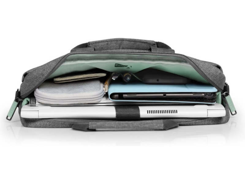 Denna snygga väska är tillverkad av 62 % återvunnet material (r-PET & PET). Dess kompakta och ultralätta design gör den väldigt praktisk när du är på språng. Dess chica och konsensuella design gör den till en idealisk väska för att transportera och skydda din bärbara dator.