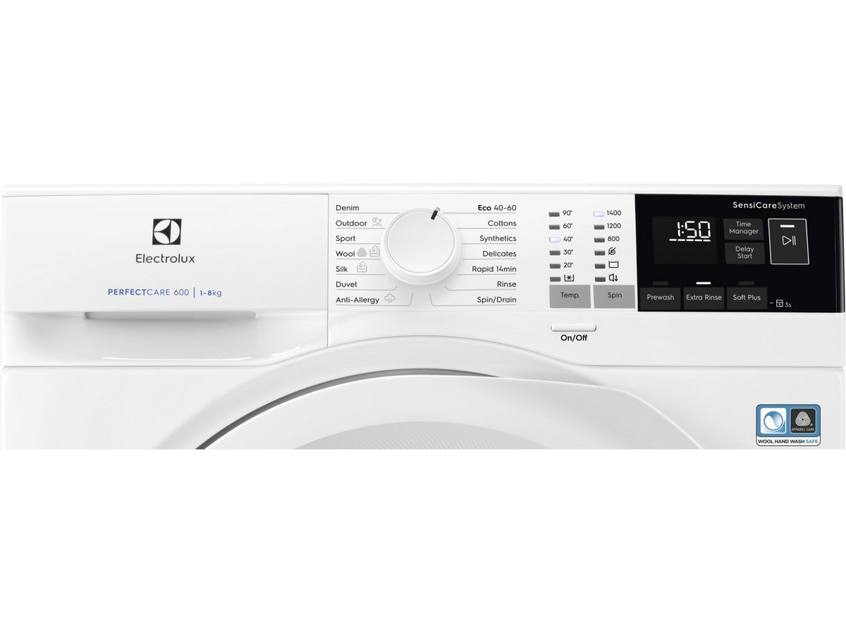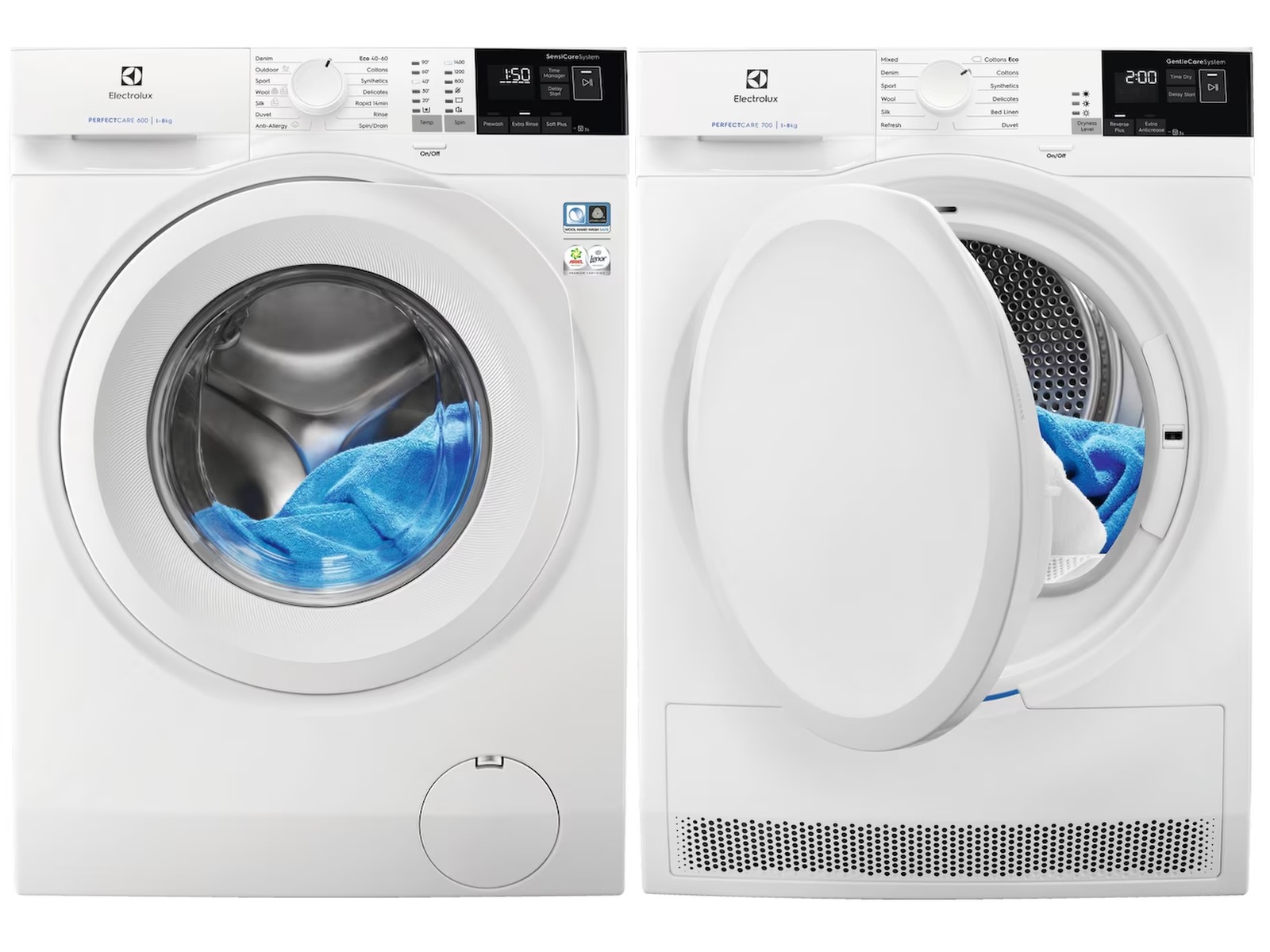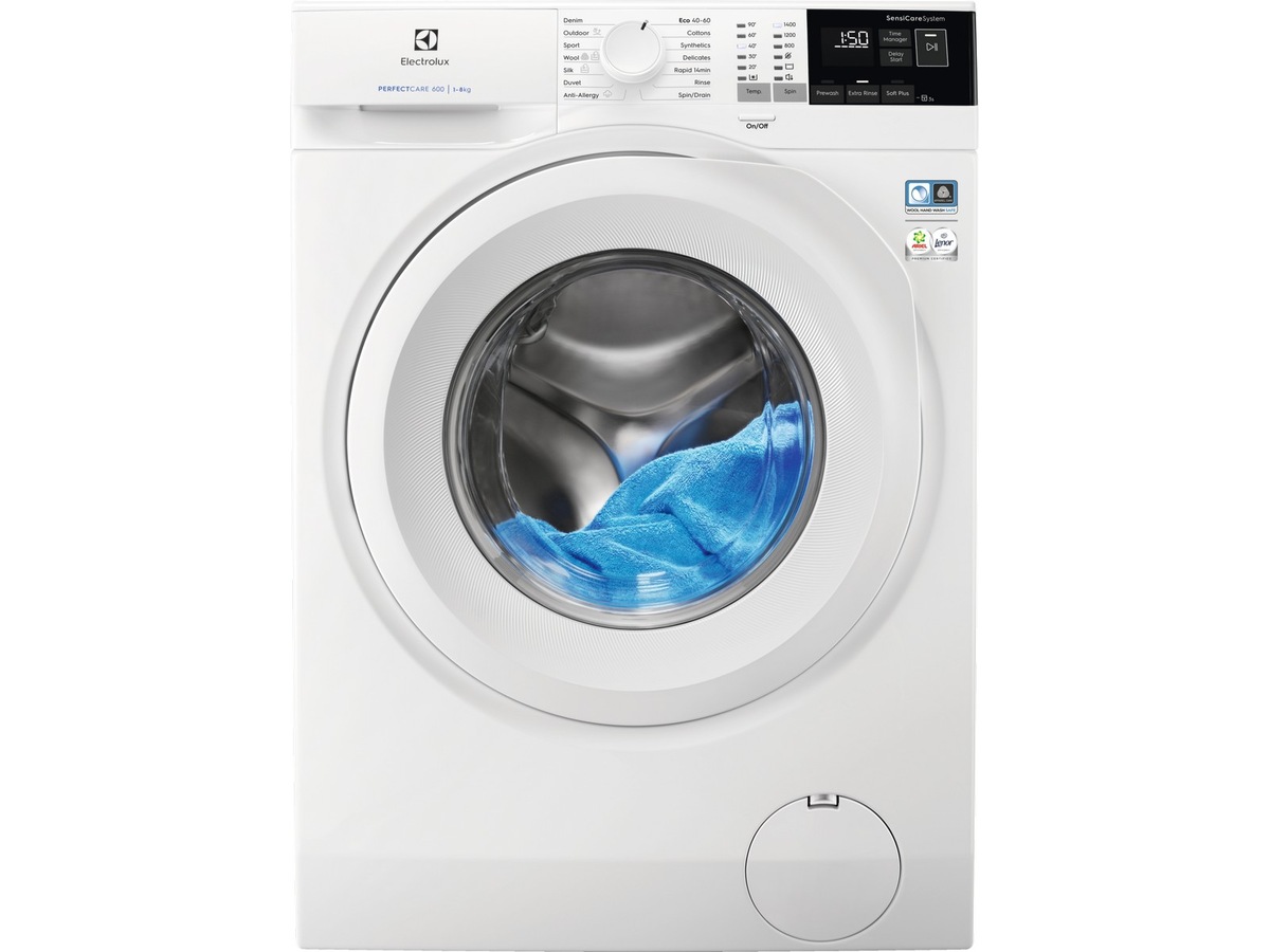 Vår nya tvättmaskin, PerfectCare 600 med SensiCare System anpassar programmets längd baserat på mängden tvätt, för att använda mindre vatten och energi och förhindra att plagg tvättas för länge. Aktiverar de mest ekonomiska cyklerna för även de minsta tvättmängderna.