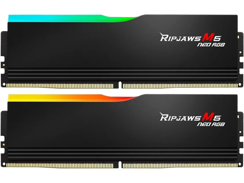 Ripjaws M5 Neo RGB är en prestandaminnen serie av DDR5 DRAM designad för AMD AM5 plattformar. Med mattsvarta eller mattsvita aluminiumkylare och anpassningsbar RGB-belysning är Ripjaws M5 Neo RGB det perfekta minnespaketet för en mängd olika PC-byggnationer och teman.