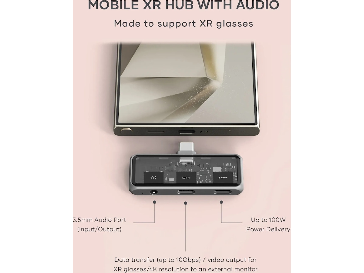 The Satechi Mobile XR Hub comes equipped with a built-in audio jack, allowing you to enjoy crystal-clear sound from your device without the need for an additional adapter. Enjoy high-fidelity sound with 3.5mm audio, immersive 2.1 channel support, and built-in microphone functionality—all with seamless volume control at your fingertips.