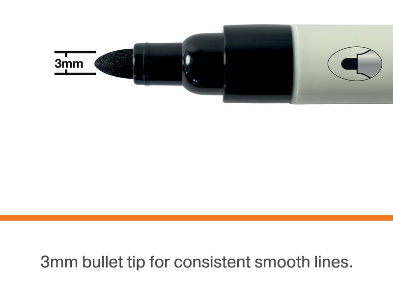 - Torrtorkmarkörer med 3 mm kulspets för konsekventa jämna linjer.