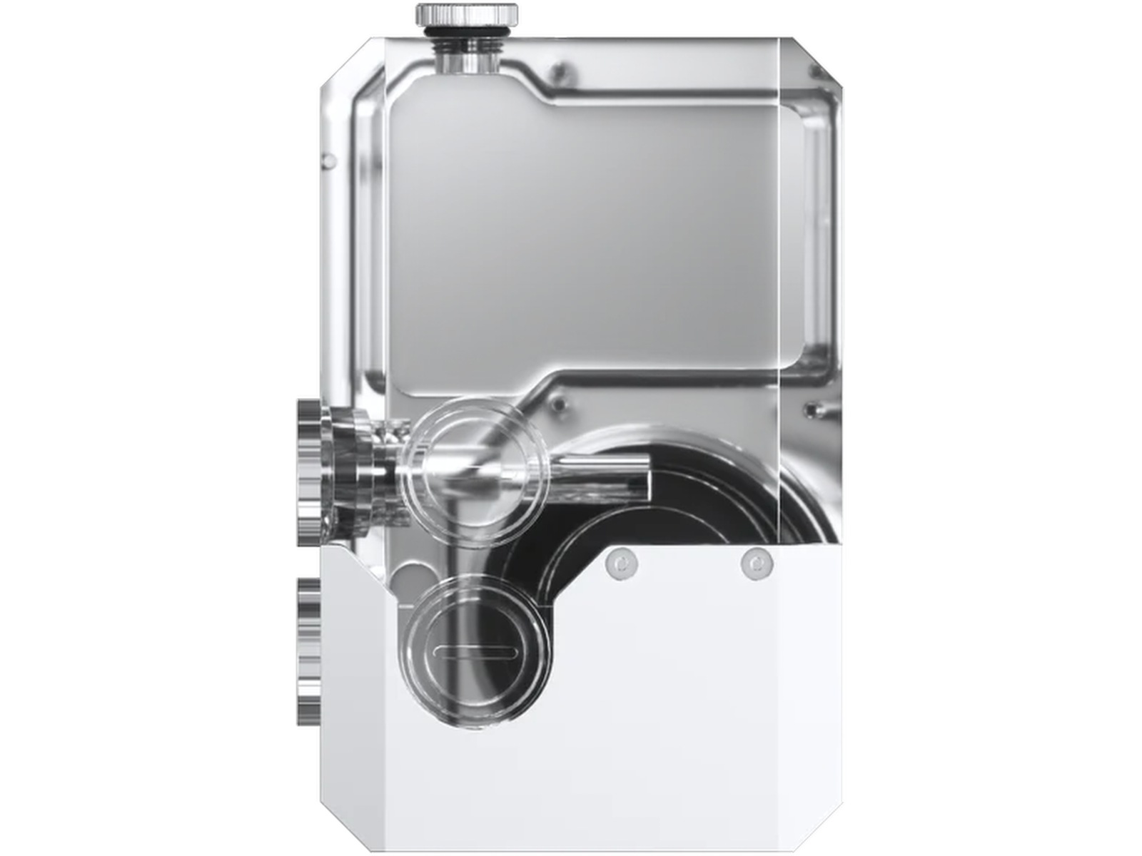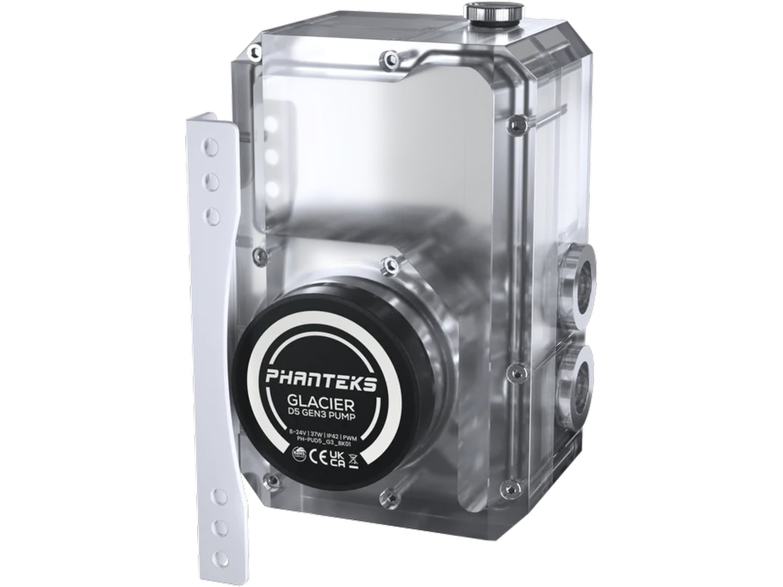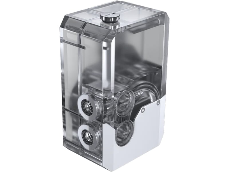 I hjärtat av denna reservoar finns den kraftfulla D5-Gen3-pumpen, sömlöst integrerad i den robusta akrylkroppen. Dess transparenta design visar upp vattenflödet från alla vinklar och lägger till både funktionalitet och ett visuellt slående element till din konstruktion.