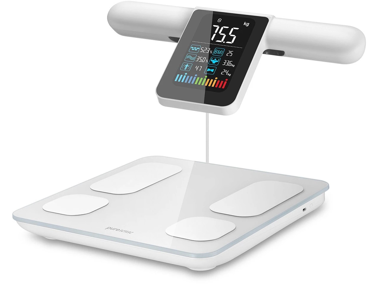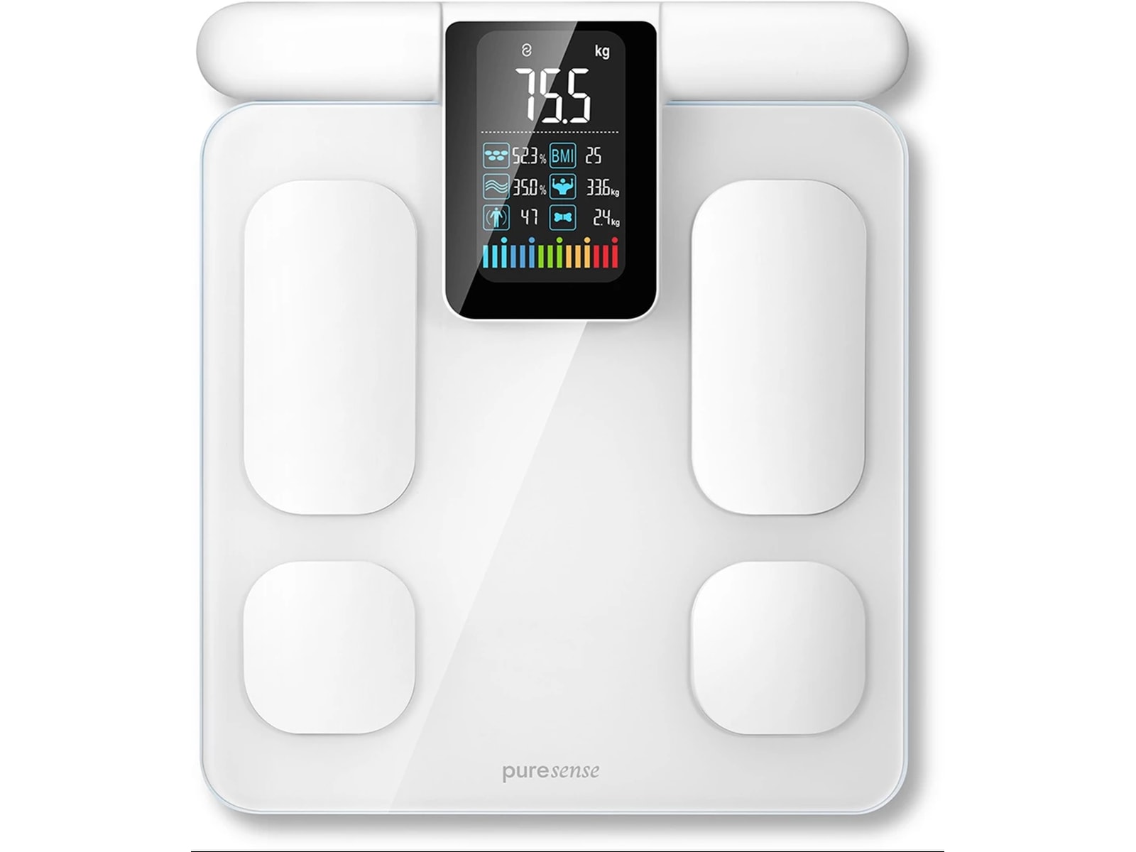 Med denna smarta kroppsvåg från PureSense kan du få en detaljerad bild av din kroppssammansättning. Med över 20 olika typer av kroppsmått går vågen långt utöver enkel viktmätning. Den registrerar vikt, BMI, kroppsfett, muskelmassa, benmassa, proteinnivåer och kroppsvatten – allt för att ge dig en heltäckande bild av din hälsa.