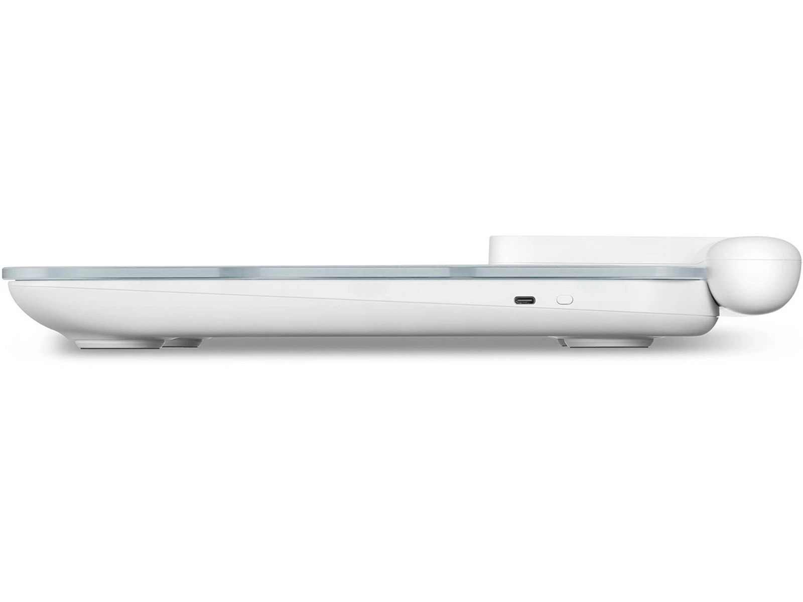 PureSense-vågen har en färgstark LCD-skärm och funktioner som automatisk aktivering och avaktivering. Dess kompakta storlek och moderna design gör den enkel att använda och förvara. Vågen laddas med en USB-C-kabel och har en imponerande standbytid på upp till 8 månader på en laddning.
