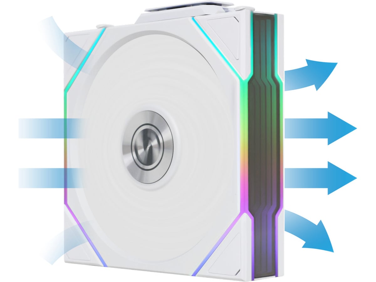UNI FAN TL Wireless använder LCP-material för fläktbladen, en kopparcentrumaxel och FDB-lager med 9 tätt placerade blad (0,65 mm mellanrum), vilket säkerställer en slående look utan att kompromissa med prestanda.