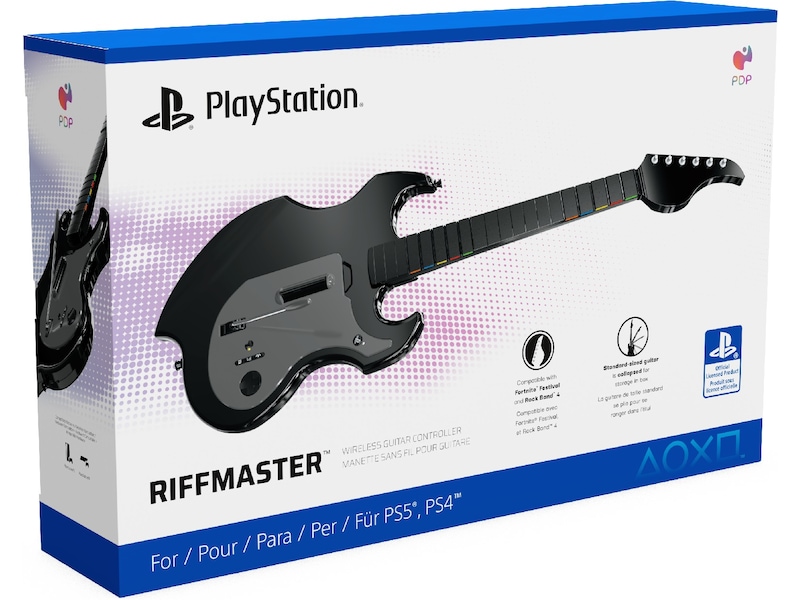 Kompatibel med Fortnite Festival och Rock Band 4 på PlayStation 5, PlayStation 4. RIFFMASTER är ett officiellt licensierat produkt från PlayStation.