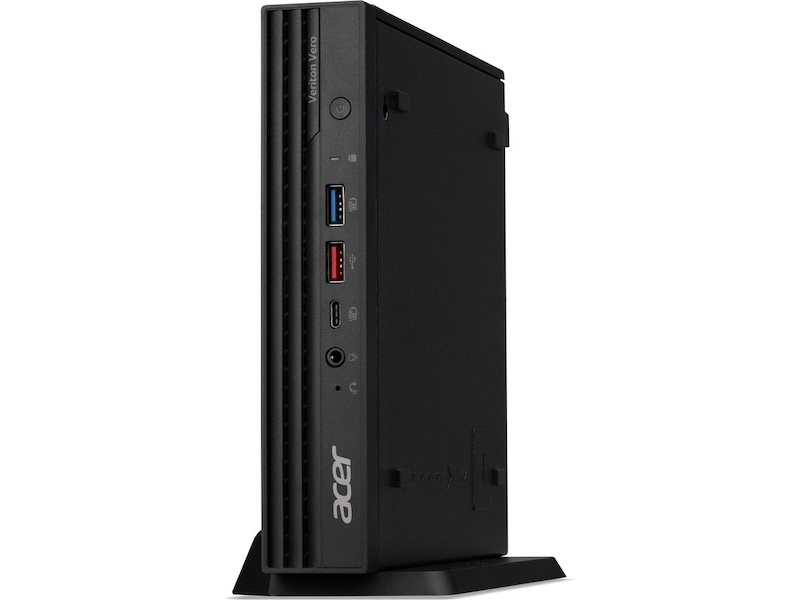 Med Acer Veriton Vero Business Desktop Mini PC kan du njuta av alla fördelar som en kraftfull 14:e generationens Intel® CoreTM- processor ger i en mycket kompakt enhet. Den utrymmesbesparande designen tar också hänsyn till hållbarhet genom att integrera 70 % PCR 1,2 plast i chassit, samtidigt som den levererar prestanda i kommersiell klass utan att ta upp mycket utrymme