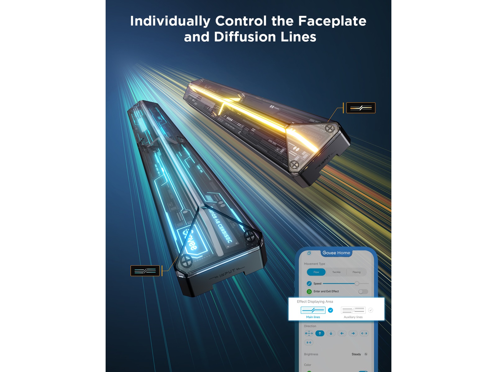 Futuristisk genomskinlig frontplatta och förhöjda diffusionslinjer